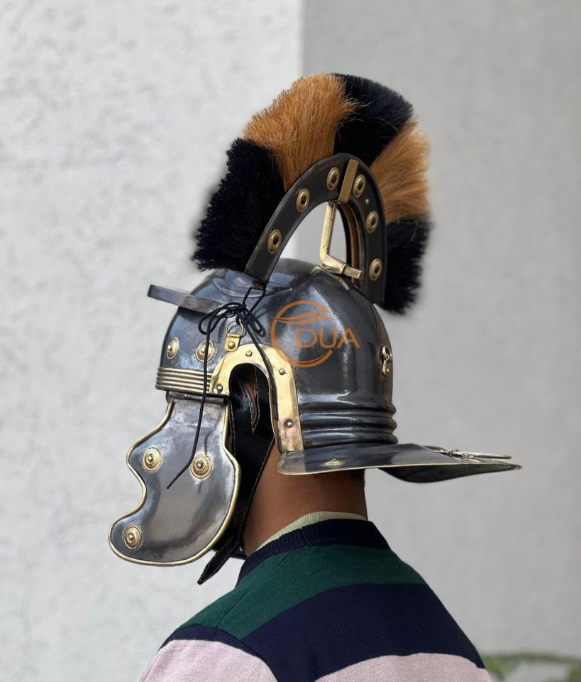 หมวกเหล็กนักรบโรมันแบบสวมใส่ได้ เบอร์ 18 พร้อมขนนกประดับ | เครื่องประดับอิมพีเรียล กาลิค จี ไทป์แบบหลายชั้นเคลือบ สำหรับฮาโลวีน คริสต์มาส และวันขอบคุณพระเจ้า