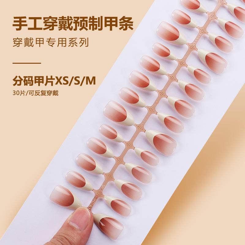 สติกเกอร์ตกแต่งเล็บปลอมขอบสีขาวสไตล์ฝรั่งเศสสุดฮอต30ชิ้นแบบถอดออกได้