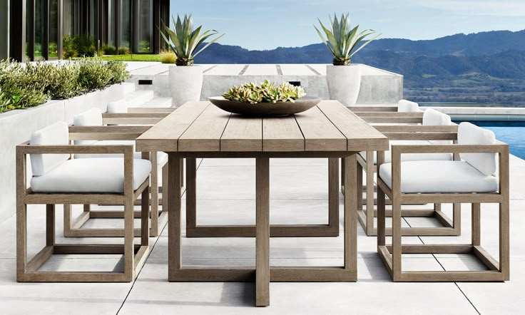 โต๊ะไม้สักเนื้อแข็งสไตล์ทันสมัยโต๊ะรับประทานอาหารกลางแจ้งเฟอร์นิเจอร์ลานที่ทนต่อสภาพอากาศสำหรับสวนหลังบ้าน bbqs Park & Villa