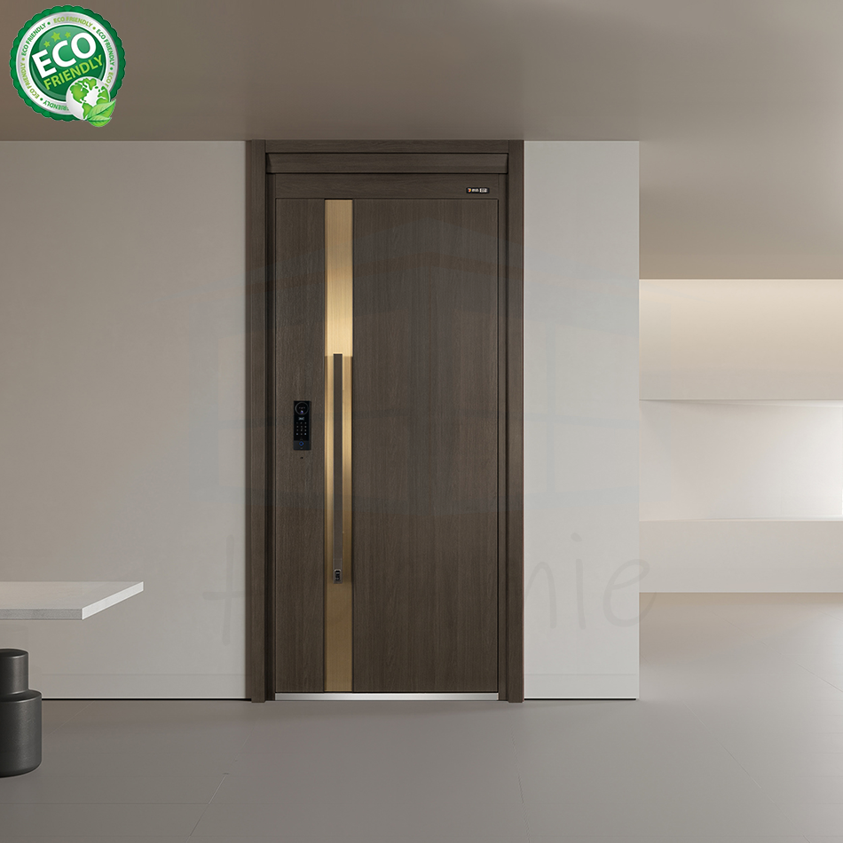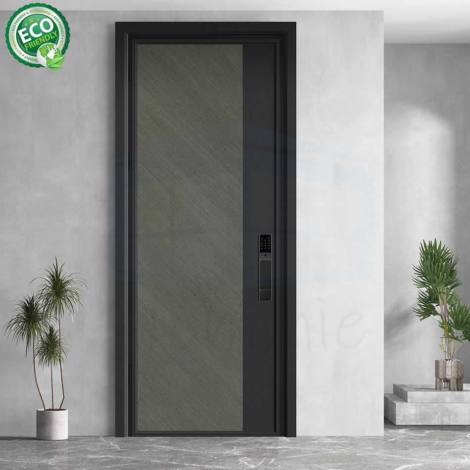 ประตูอลูมิเนียมอัลลอยด์กันสภาพอากาศ พร้อมแผงด้านข้าง ดีไซน์ทันสมัย ป้องกันกระสุน สำหรับทางเข้าบ้านภายนอก
