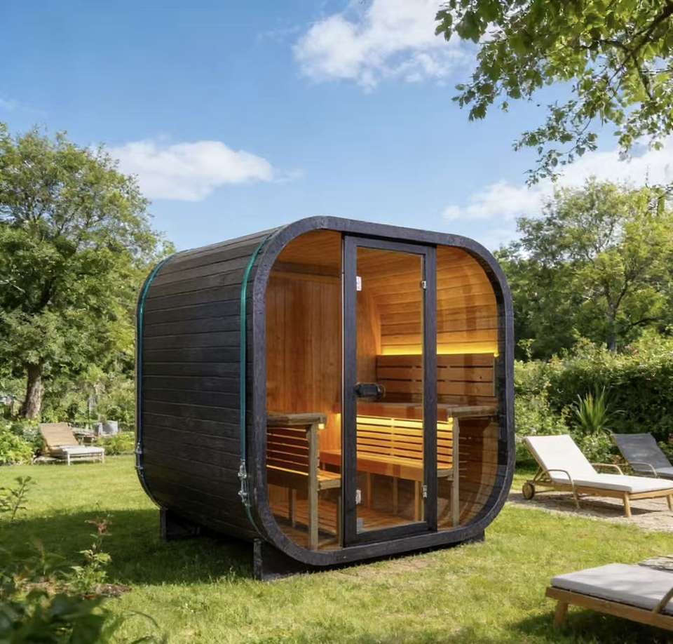 ห้องซาวน่าอบไอน้ำทรงสี่เหลี่ยมสีดำ ทนทานต่อสภาพอากาศ สำหรับ 4-6 คน เหมาะสำหรับการฟื้นฟูร่างกายหลังออกกำลังกาย ใช้งานง่าย ทำจากไม้เนื้อแข็งเพื่อสุขภาพ