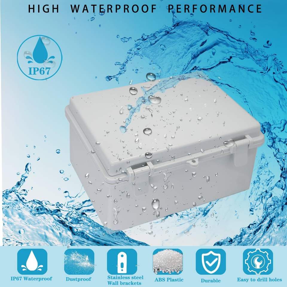 กล่องไฟฟ้ากลางแจ้งพลาสติก ABS กันน้ำ IP67 พร้อมช่องต่อสายเคเบิลสำหรับติดตั้งเราเตอร์ สวิตช์ และโครงการต่างๆ