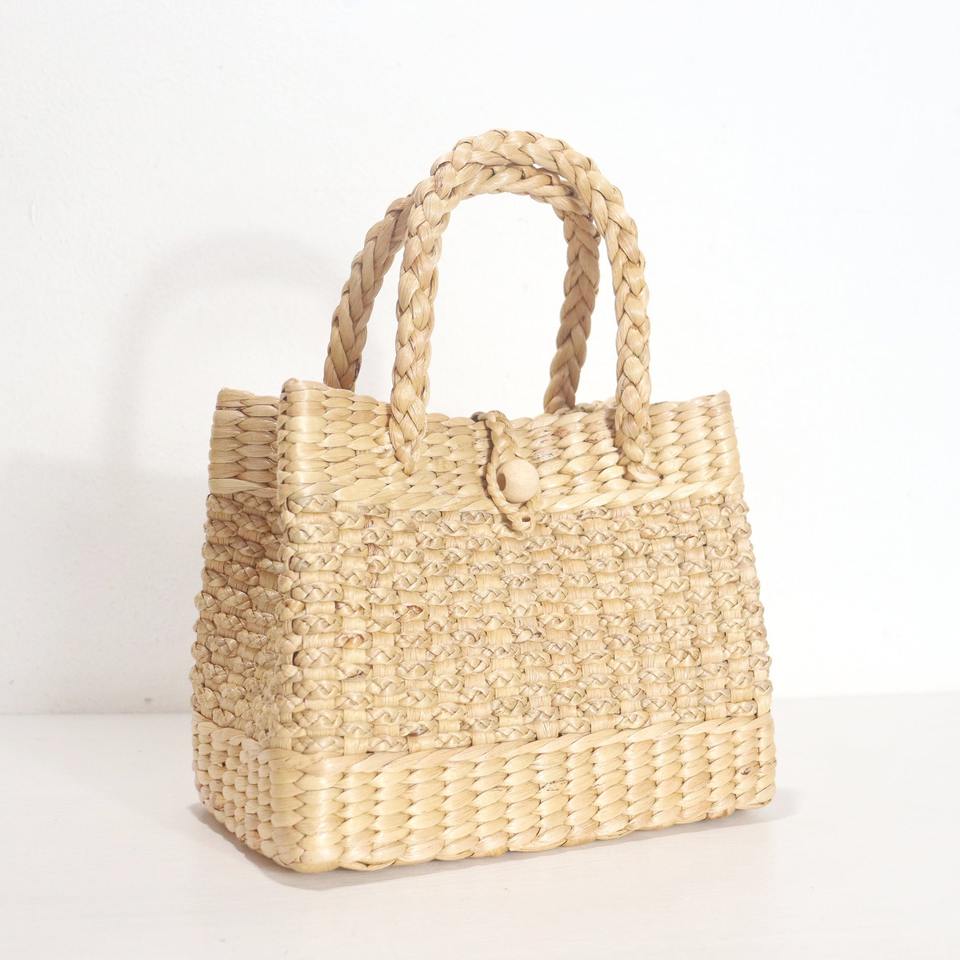 กระเป๋าถือสานทำมือจากวัสดุธรรมชาติ กระเป๋าถือจากผักตบชวา พร้อมป้ายยี่ห้อ