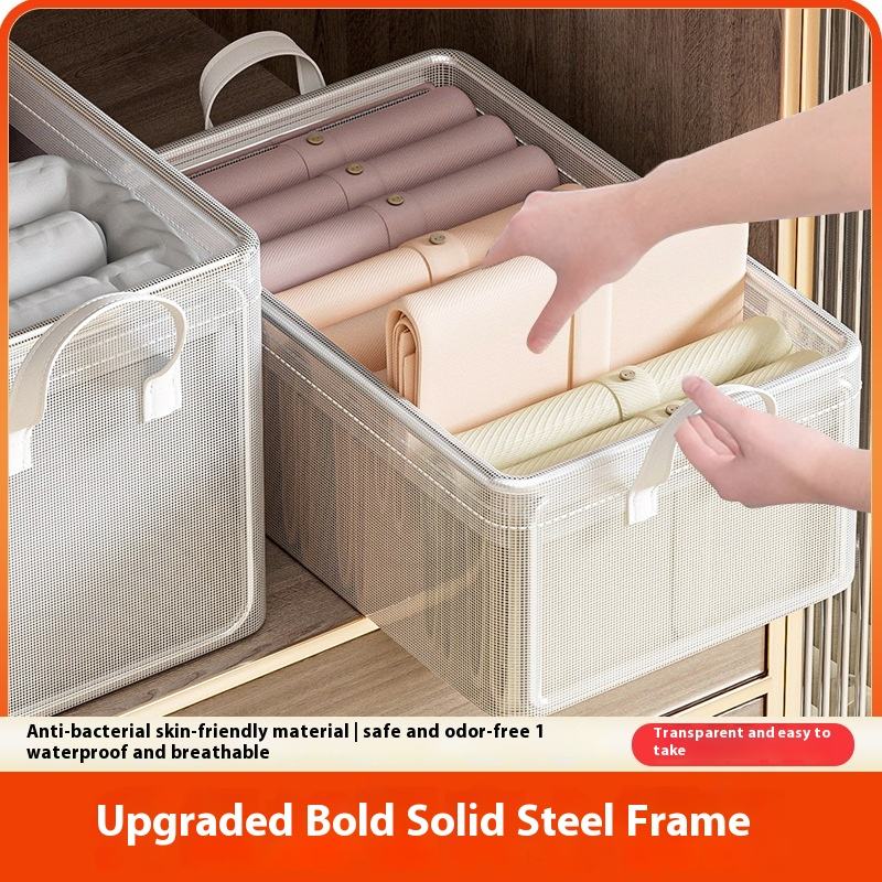 ตะกร้าเก็บของพับได้แบบชั้นเดียวใส Weavewin กล่องจัดระเบียบอเนกประสงค์สำหรับบ้าน ตู้เสื้อผ้า เสื้อผ้า กางเกง ห้องนั่งเล่น ทำจากพลาสติก
