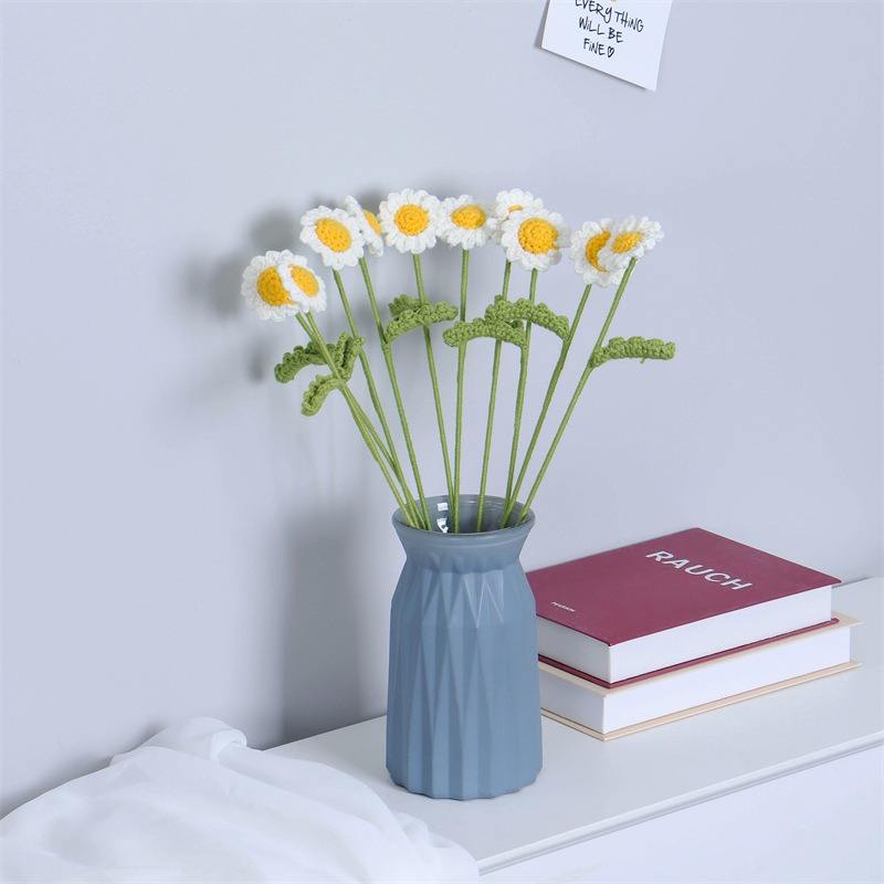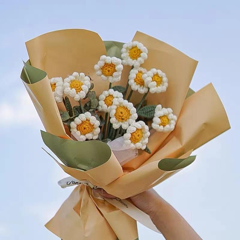 การทอผ้าด้วยเส้นด้าย ถักดอกไม้ ช่อดอกเดซี่ขนาดเล็ก ดอกคาโมไมล์ ดอกไม้ที่คงอยู่ตลอดกาล ของขวัญวันหยุด ดอกไม้สร้างสรรค์ที่คงอยู่ตลอดกาล
