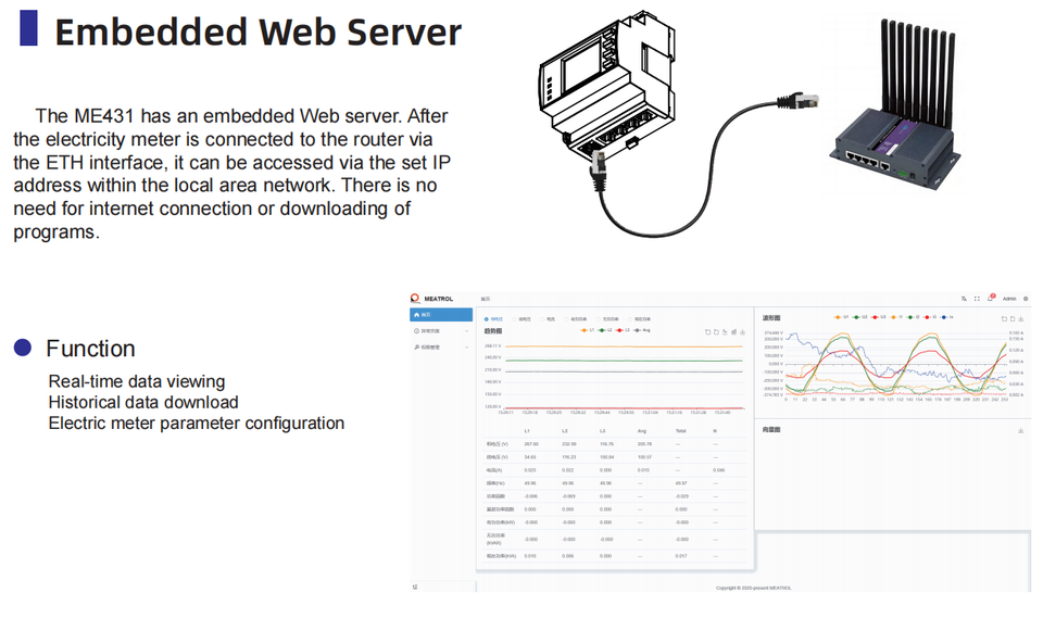 เซิร์ฟเวอร์เว็บ LAN 4 ช่องสัญญาณ ตรวจสอบข้อมูลแบบเรียลไทม์พร้อมกัน MEATROL ME431 เครื่องวัดพลังงานอัจฉริยะแบบหลายช่องสัญญาณ