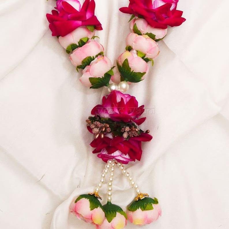 พวงมาลัยดอกไม้ประดิษฐ์ทำมือสำหรับเจ้าบ่าวและเจ้าสาวอุปกรณ์เสริมสำหรับงานแต่งงาน Jaimala Varmala และพวงมาลัยสำหรับเจ้าสาว