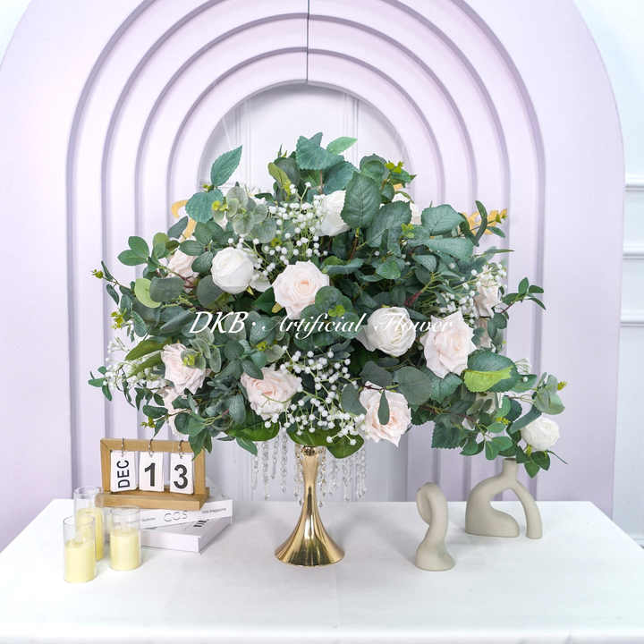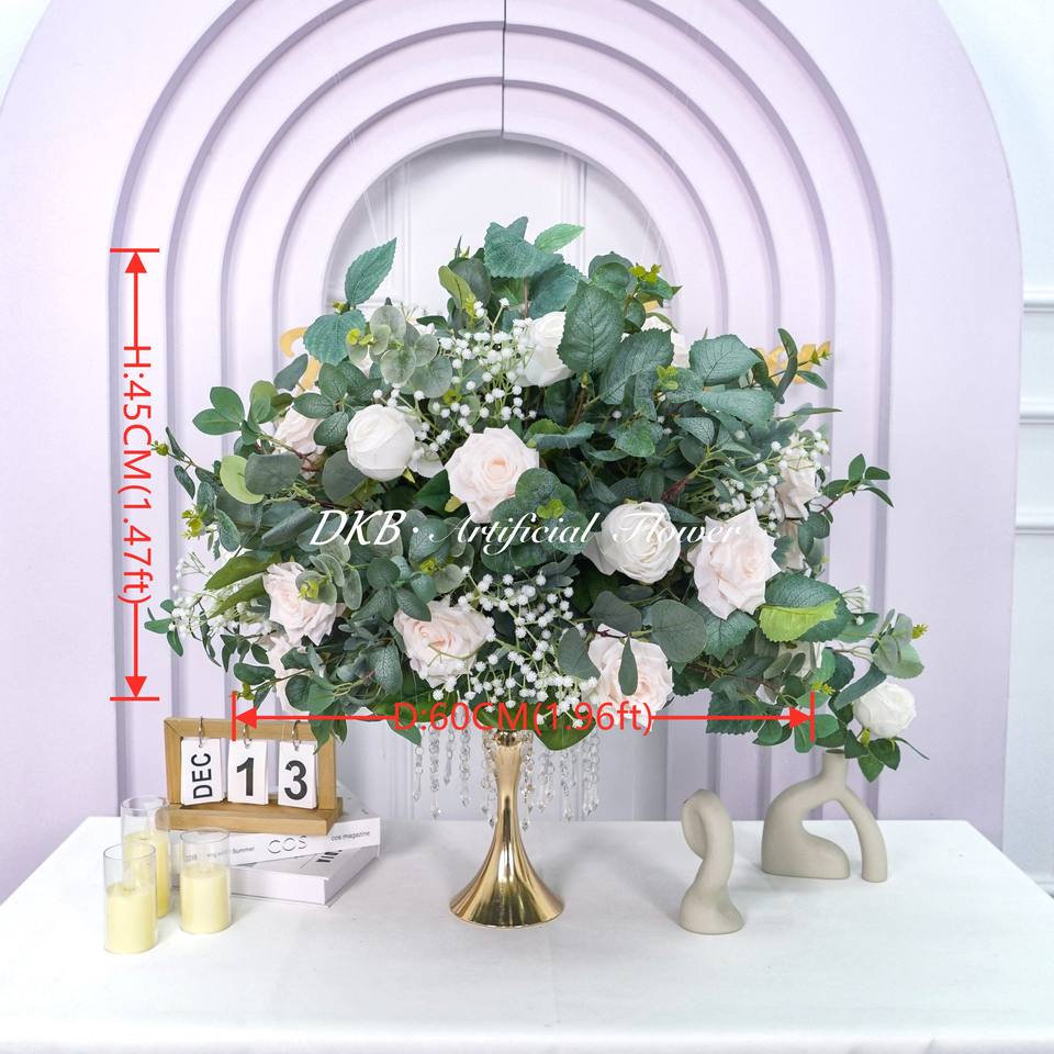 ลูกบอลดอกไม้ประดิษฐ์สำหรับตกแต่งงานแต่งงานดอกไม้ประดิษฐ์สีขาวกุหลาบและลมหายใจของเด็กทารก