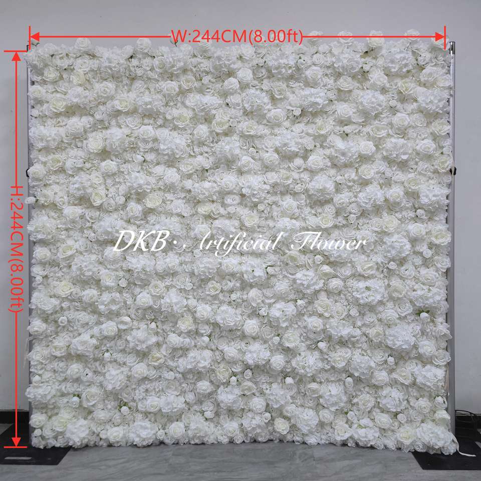 ฉากหลังแต่งงานตกแต่งดอกไม้ประดิษฐ์ทำจากผ้าไหมม้วนดอกกุหลาบสีขาวดอกไม้ติดผนังฉากหลัง8FT x 8FT สำหรับตกแต่ง
