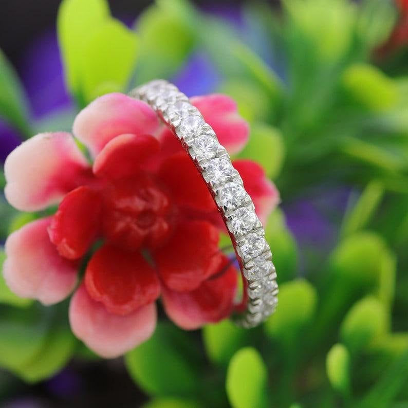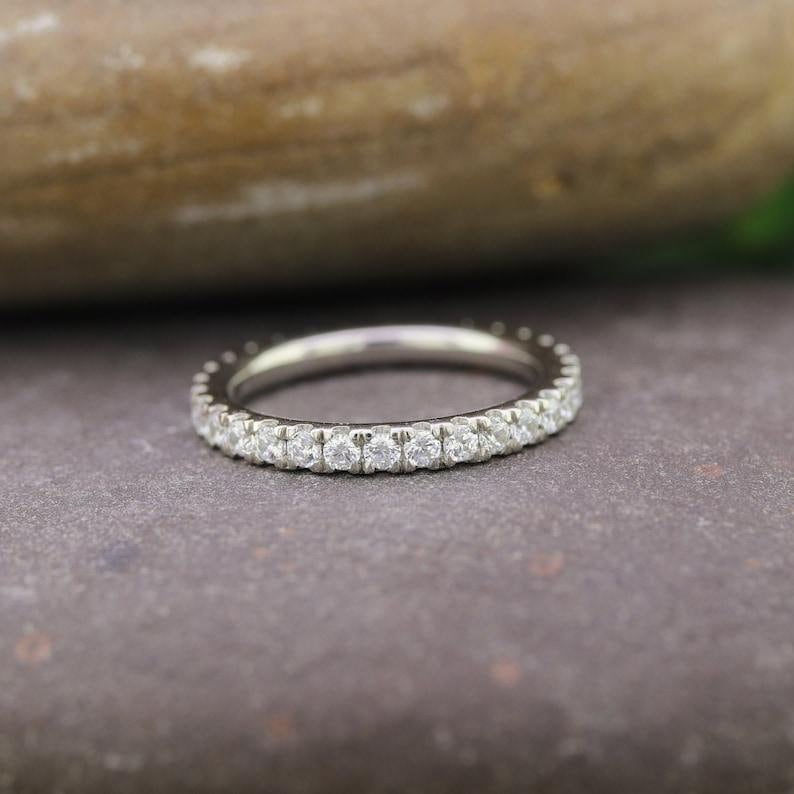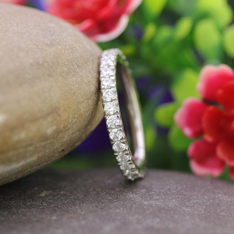 วงดนตรีแต่งงานวงแหวนเพชรมออิสซาไนต์กลม0.80TCW สีขาวพร้อมแหวนหมั้นทอง18K สีทึบพร้อมสายเข้าชุด