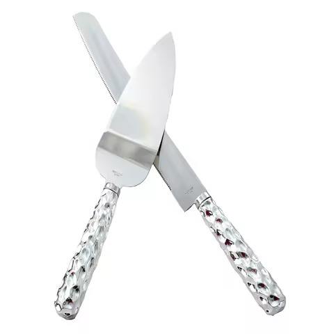 มีดเค้กแต่งงานชุดเซิฟเวอร์นิกเกิลสีเงินอุปกรณ์สำหรับอบเค้กชุดมีดและเซิร์ฟเวอร์