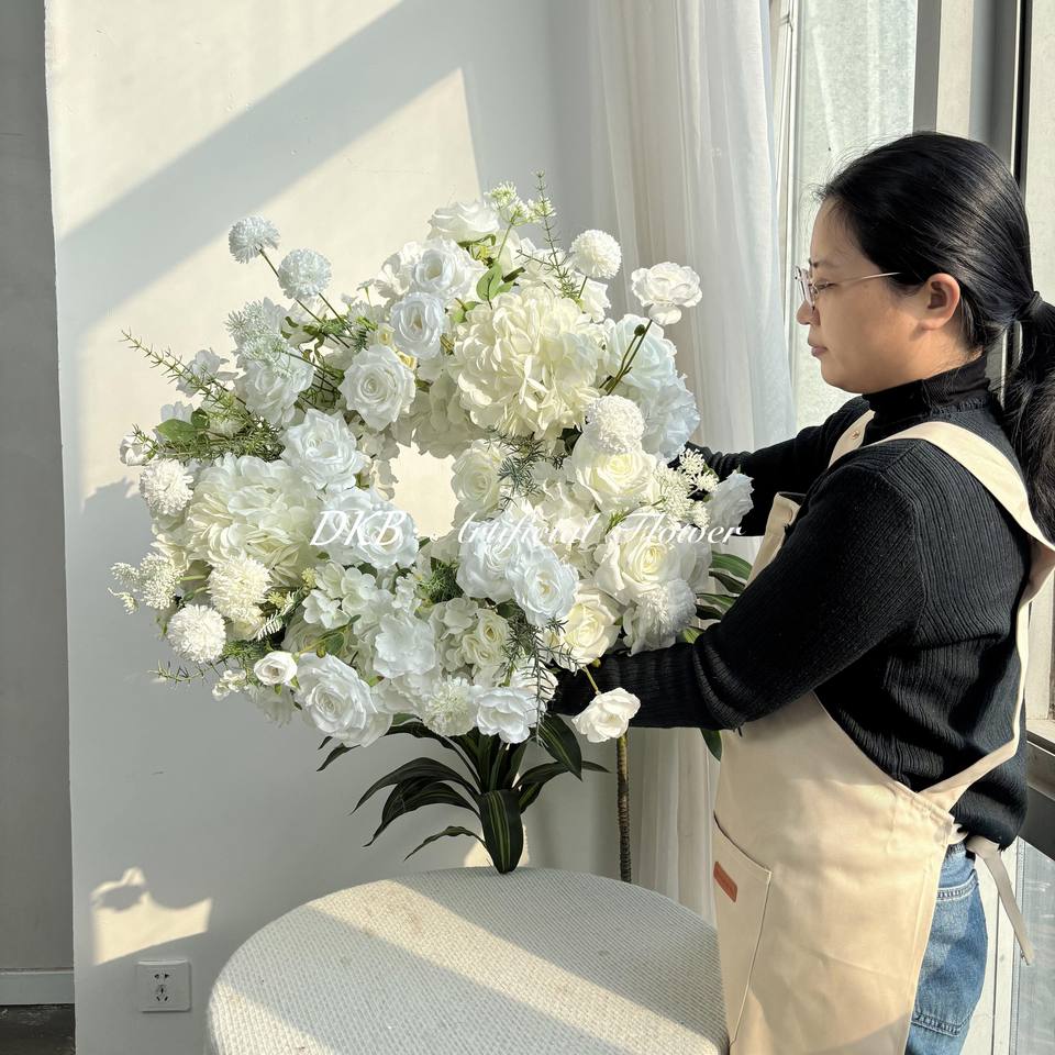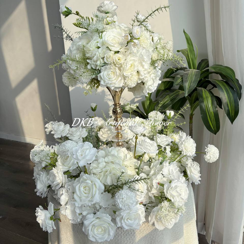 ลูกบอลดอกไม้ประดิษฐ์สำหรับตกแต่งโต๊ะในงานแต่งงานลูกบอลทำจากผ้าไหม