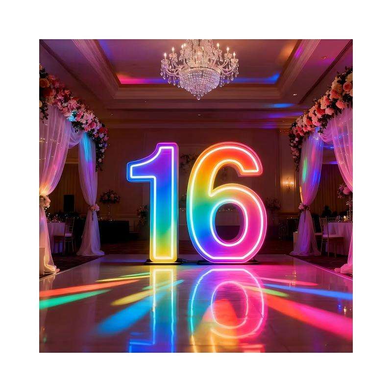 อุปกรณ์ตกแต่งงานแต่งงาน ตัวอักษรไฟ LED ขนาด 3 ฟุต 4 ฟุต ตัวเลขขนาดใหญ่ ไฟนีออน ตัวอักษรโลหะแบบมาร์กี ป้ายไฟ LED สำหรับงานกลางแจ้ง