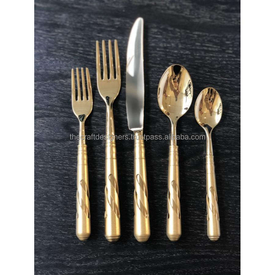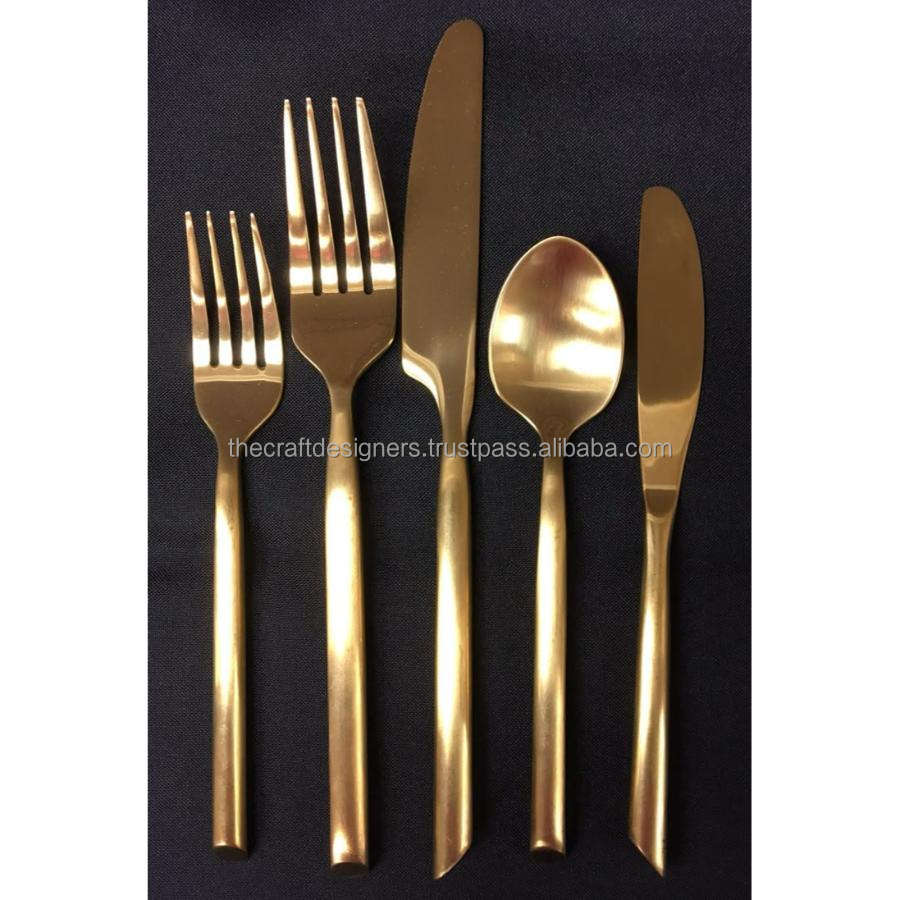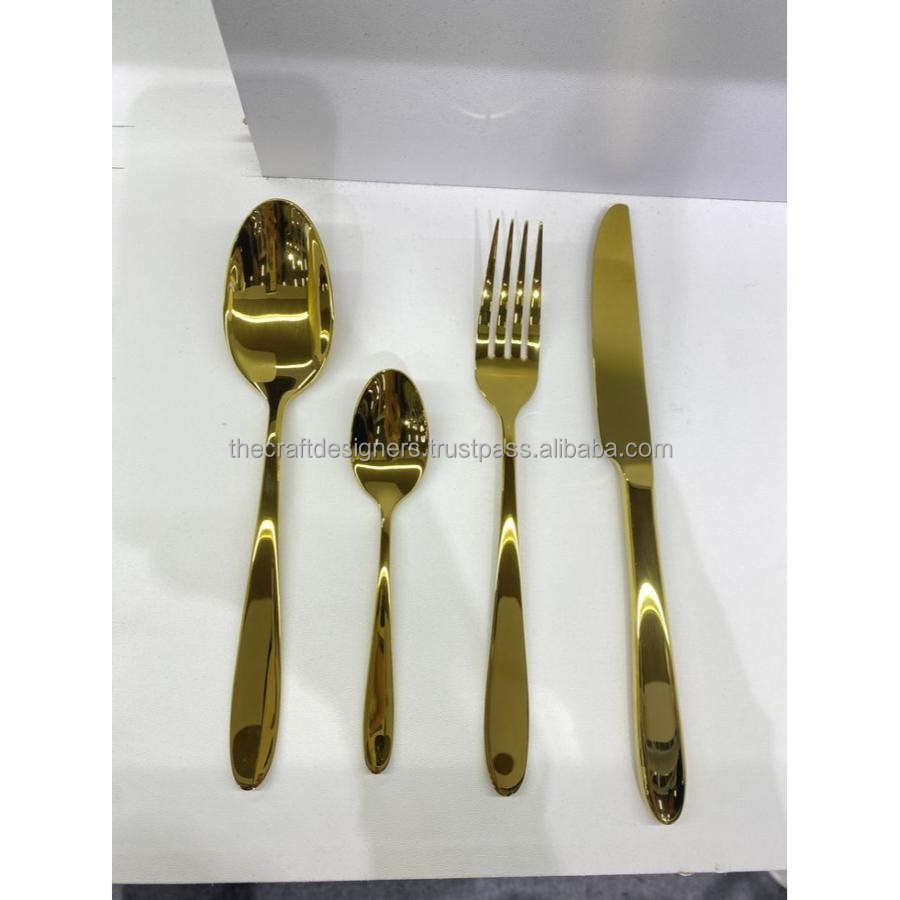 ชุดเครื่องใช้บนโต๊ะอาหารสุดหรูตกแต่งในงานแต่งงานนำกลับมาใช้ใหม่ได้ชุดเครื่องเงินสแตนเลสสีทองเป็นมิตรกับสิ่งแวดล้อม