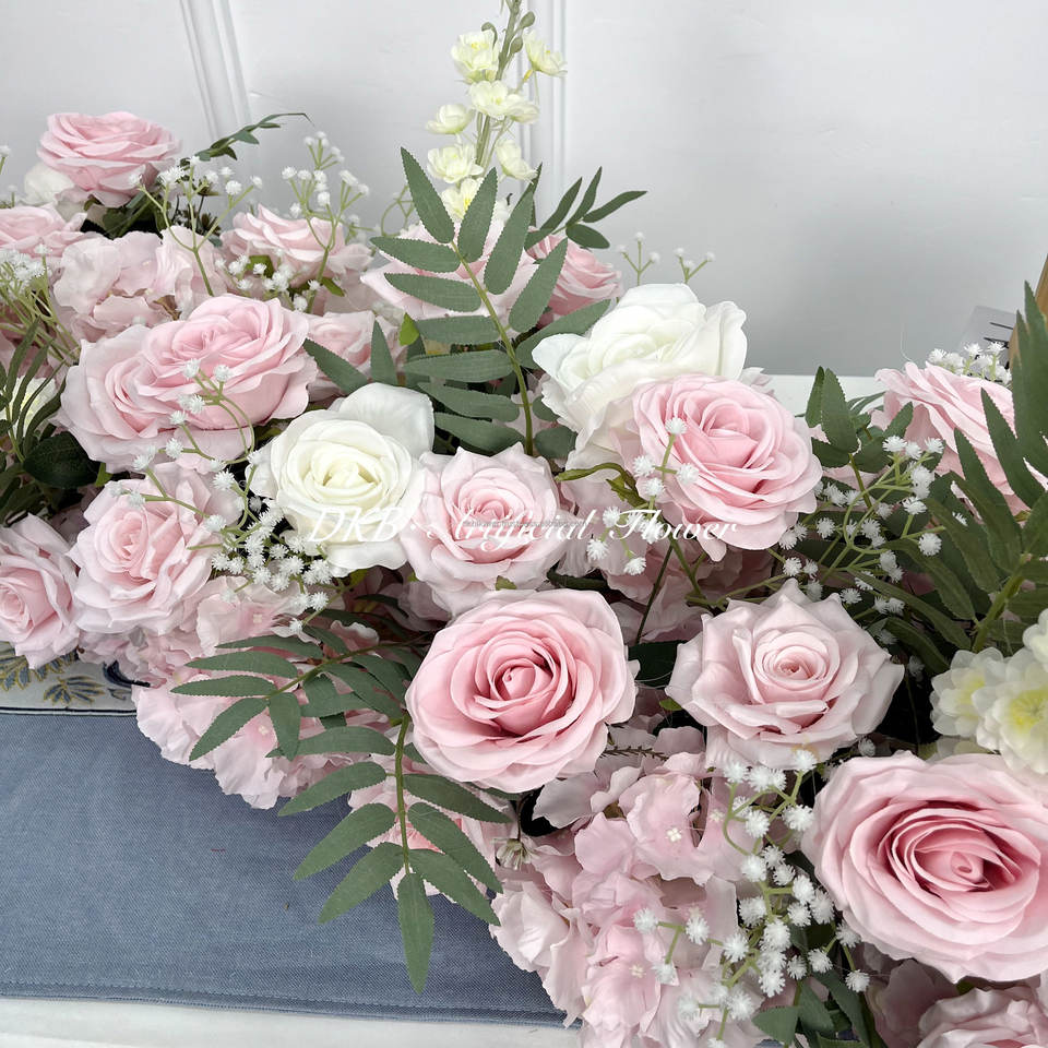 ตัววิ่งประดับดอกไม้ผ้าไหมคุณภาพสูงพื้นหลังทางเดินทางเดินสีชมพูและสีขาวสำหรับจัดงานแต่งงาน