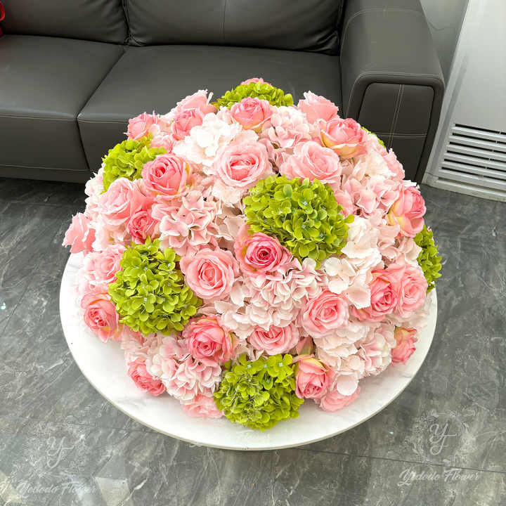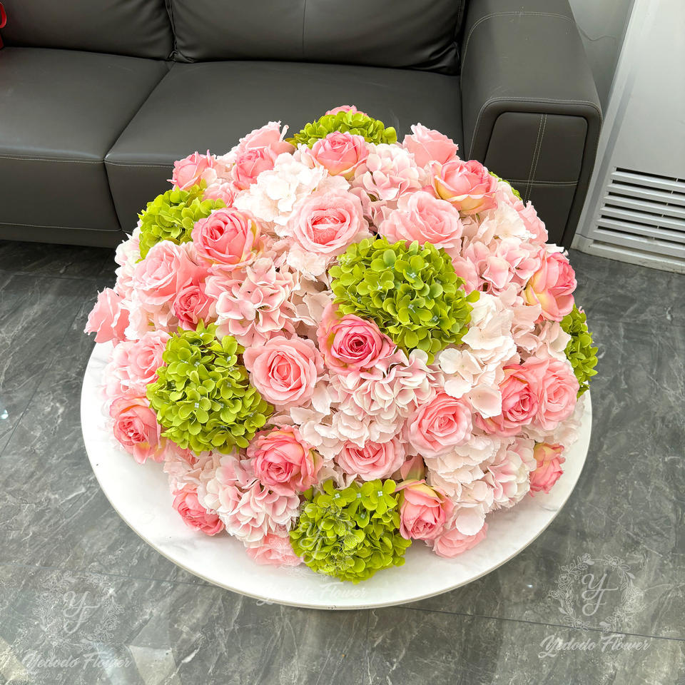 ตกแต่งงานแต่งงาน ดอกกุหลาบขนาดใหญ่ 50 ซม. 60 ซม. 70 ซม. 80 ซม. จัดดอกไม้ทรงกลมสีชมพูอ่อน สำหรับตกแต่งโต๊ะกลางงานแต่งงาน