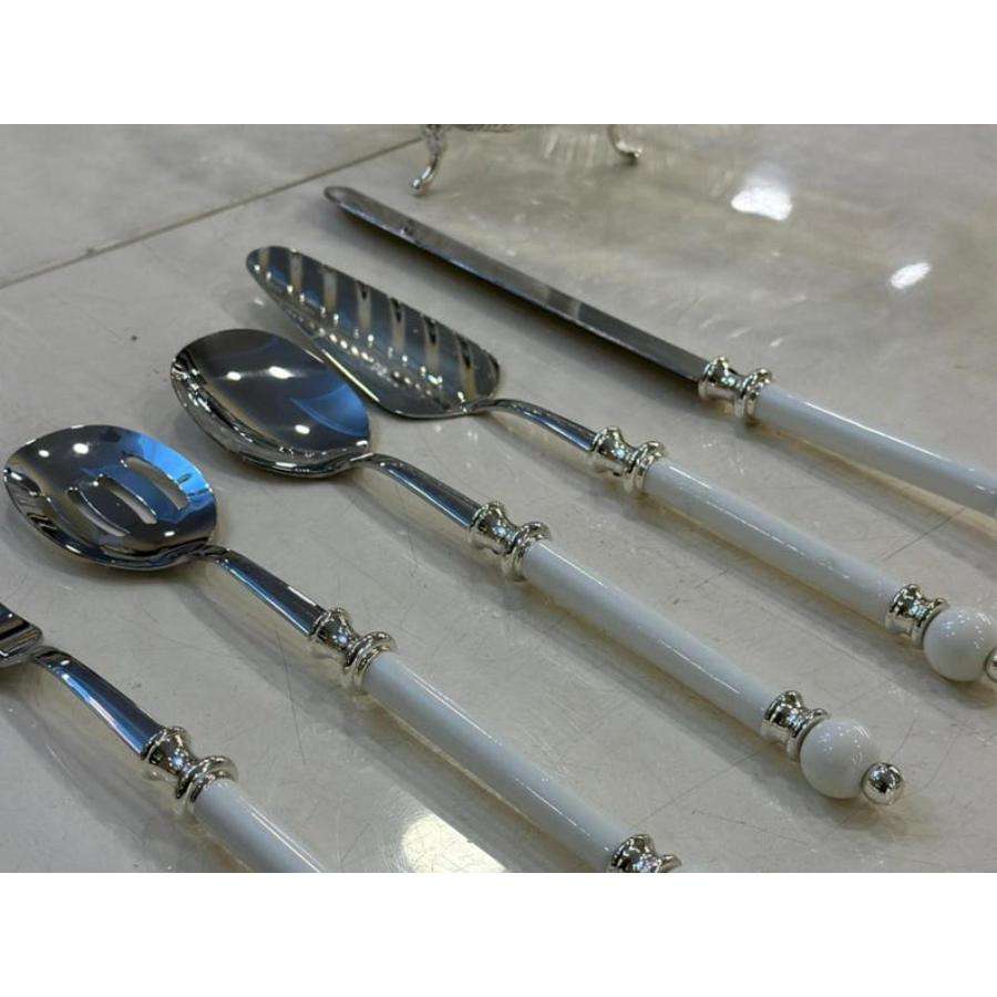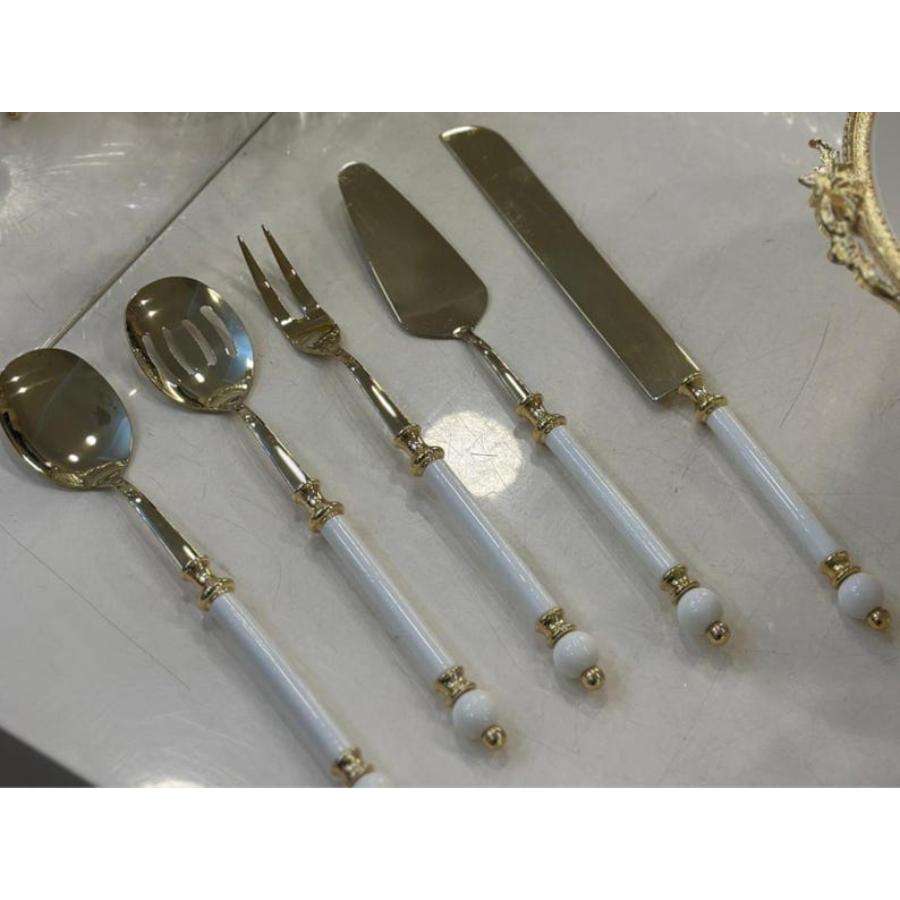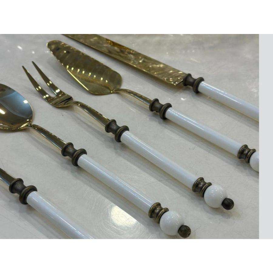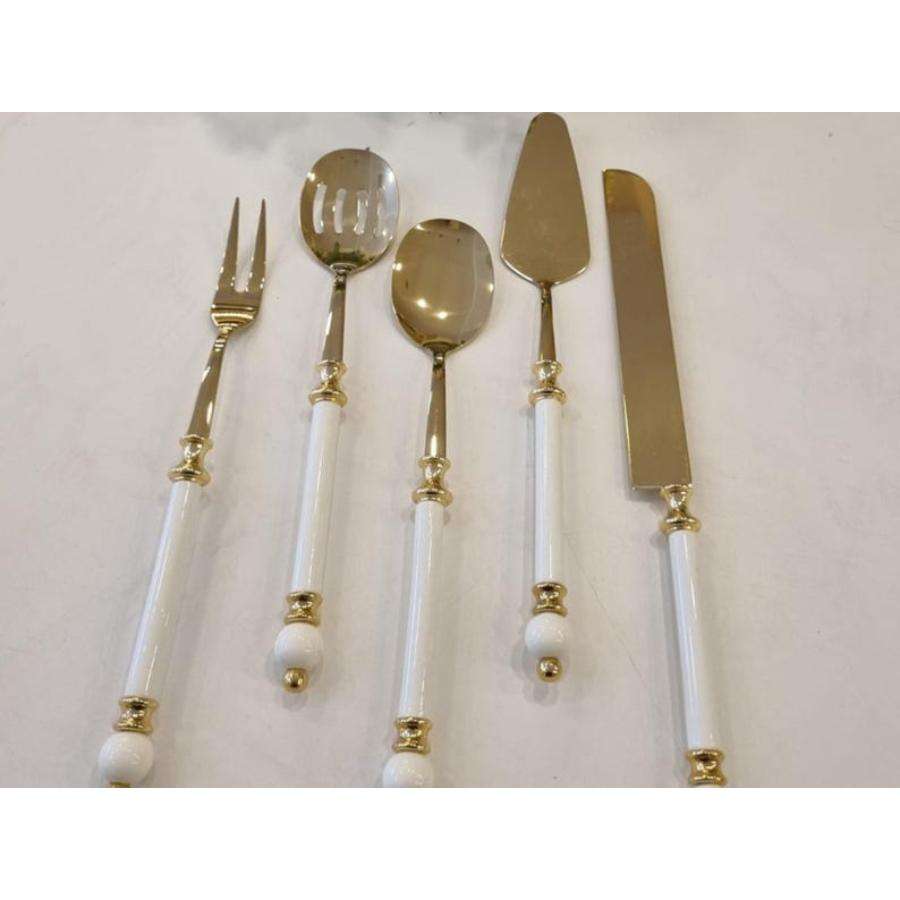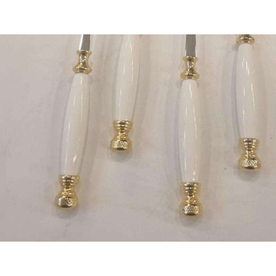 ชุดมีดทองพร้อมที่จับเซรามิกอุปกรณ์ตกแต่งงานแต่งงานชุดเครื่องใช้บนโต๊ะอาหารสุดหรูอุปกรณ์ตกแต่งโต๊ะเครื่องเงิน