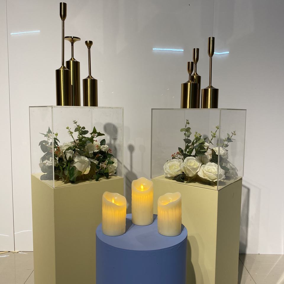ชุดแท่นวางแบบปรับความสูงได้แท่นวางอะคริลิคทำจากพีวีซีสีทองใช้ตกแต่งงานแต่งงาน
