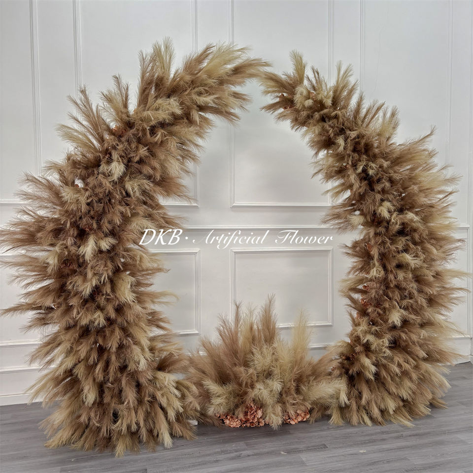 ซุ้มแต่งงานรูปแตรประดับด้วยต้นแพมพัสสำหรับทางเดินเข้า