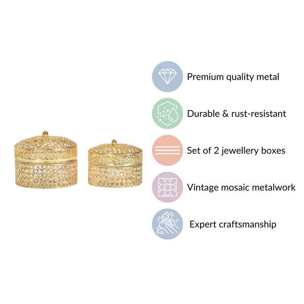 กล่องขนมผลไม้แห้งกรอบกลมเคลือบทองสำหรับตกแต่งงานแต่งงานพร้อมฝาปิดที่เก็บขนมผลไม้แห้ง