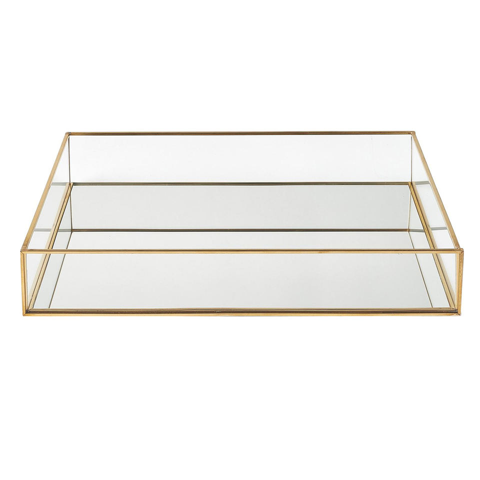 ถาดเก็บเครื่องประดับตกแต่งงานแต่งงานถาดแก้วและโลหะทองเหลืองถาดแก้ว