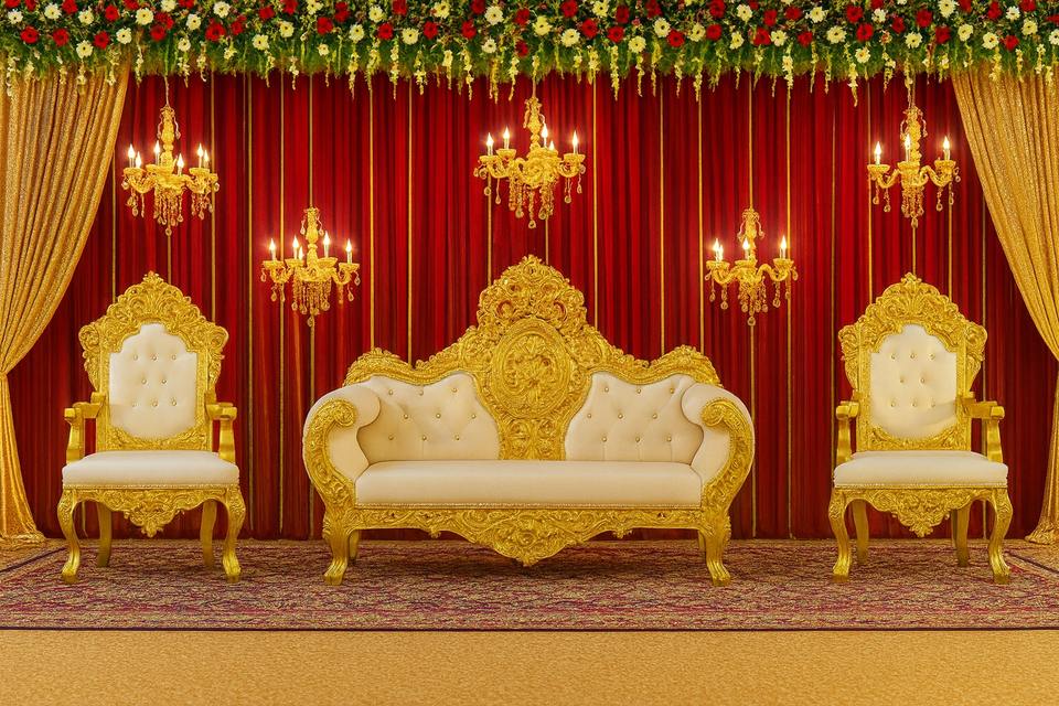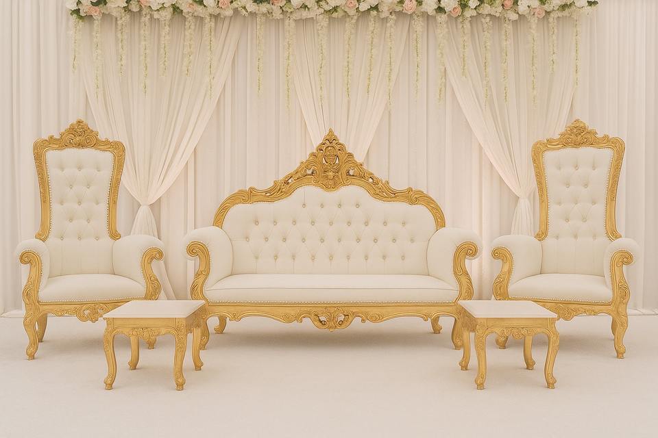 ชุดโซฟาแกะสลักสีเงินสำหรับงานแต่งงานเฟอร์นิเจอร์สีทองสำหรับเวทีการจัดงานแต่งงานดีไซน์ทันสมัยชุดเฟอร์นิเจอร์งานแต่งงานหรูหรา USA