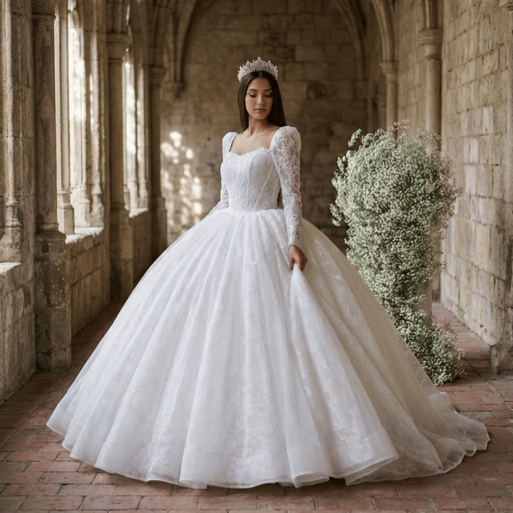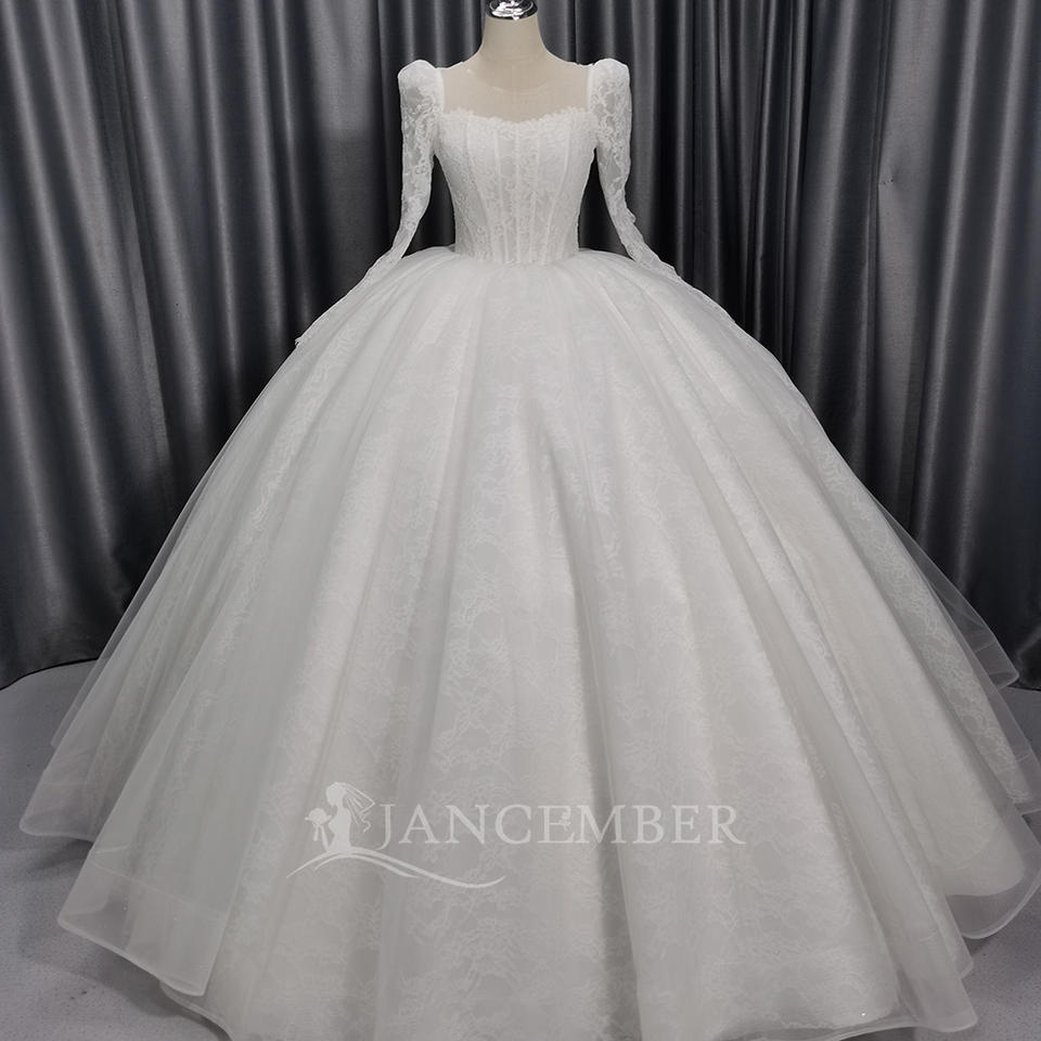 ชุดแต่งงานแบบโมเดิร์นทรงบอลกาวน์ประดับเลื่อมลูกปัดลูกไม้ยาวลากพื้นแบบเปิดหลังสำหรับงานกลางคืน