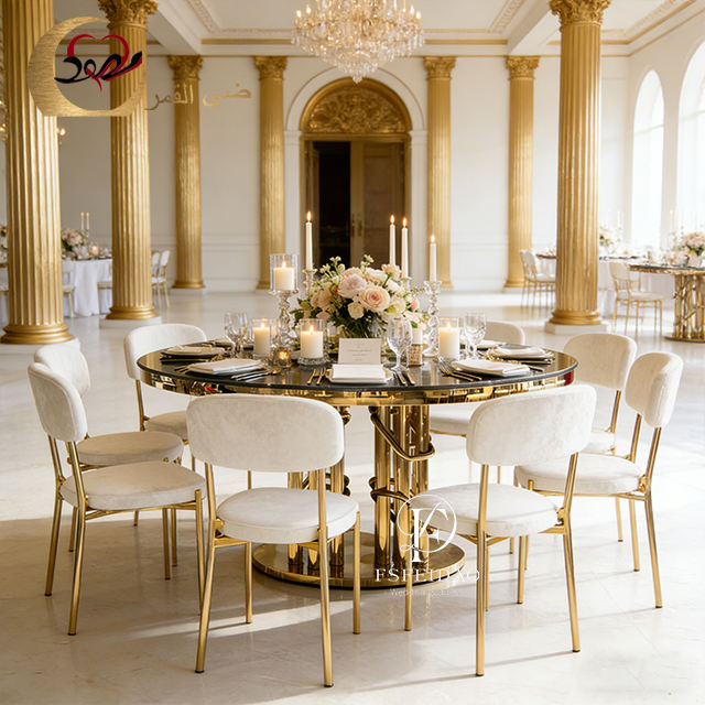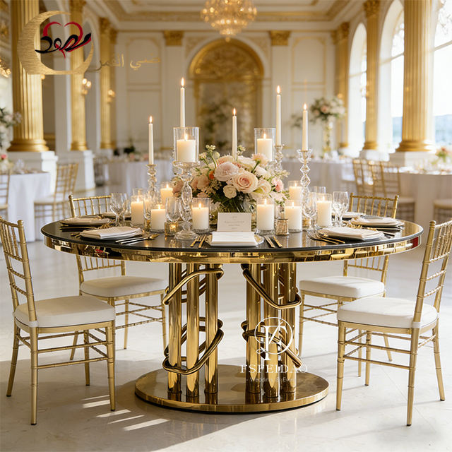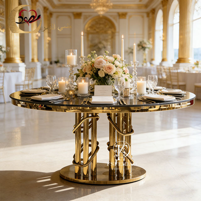 โต๊ะจัดเลี้ยงงานแต่งงานสไตล์โมเดิร์นโรแมนติกและหรูหรา ทำจากสแตนเลสสีทอง/โรสโกลด์ พร้อมกระจกเงา คุณภาพดี เชื่อมอย่างมืออาชีพ เหมาะสำหรับใช้ในโรงแรม
