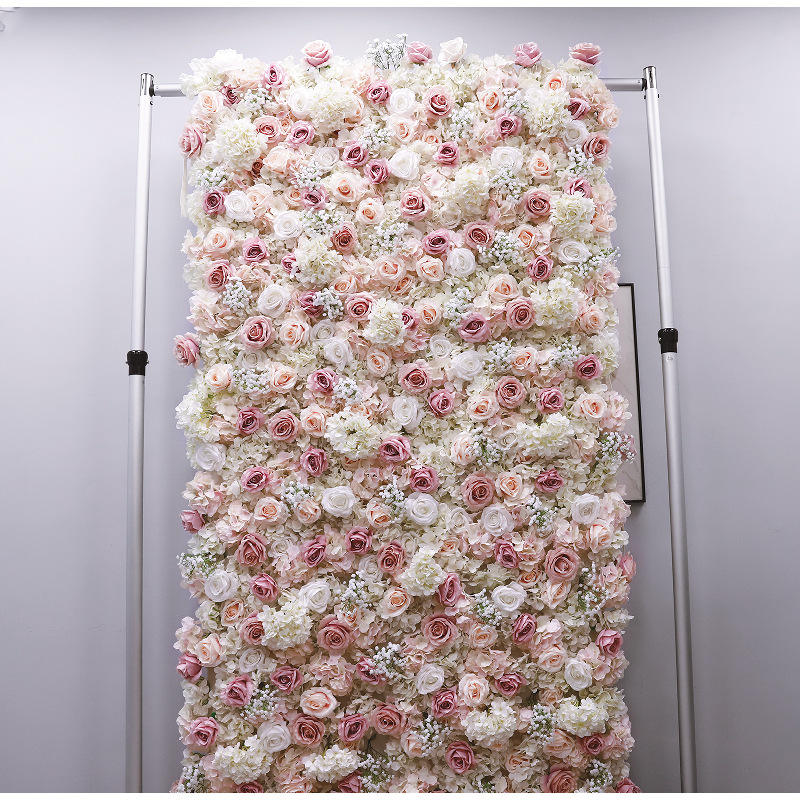 ฉากหลังดอกไม้สำหรับงานแต่งงาน ขนาด 8 ฟุต x 8 ฟุต ผนัง 3 มิติ สำหรับตกแต่ง แบบม้วนเก็บได้ สีขาว ดอกยิปโซฟิลลาสีชมพู ผ้ากุหลาบ ดอกไม้ประดิษฐ์