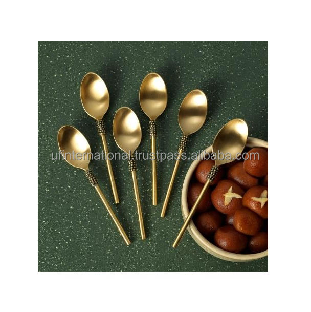 ของขวัญแต่งงานทองด้ามยาวตุรกีช้อนชาขายส่งห้องครัวทองเหลืองดาวจับผู้ผลิตส้อมและช้อนทอง