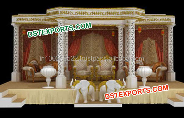 มันดาปงานแต่งงานแบบแกะสลักสีทอง มันดาปแบบดั้งเดิมลายจัลลีสีทอง มันดาปงานแต่งงานแบบมหาราชาทำจากไฟเบอร์ มันดาปสีทองที่กำลังเป็นที่นิยม จัดงานแต่งงานที่เบลเยียม
