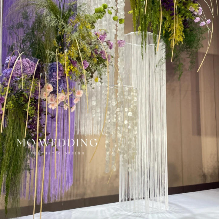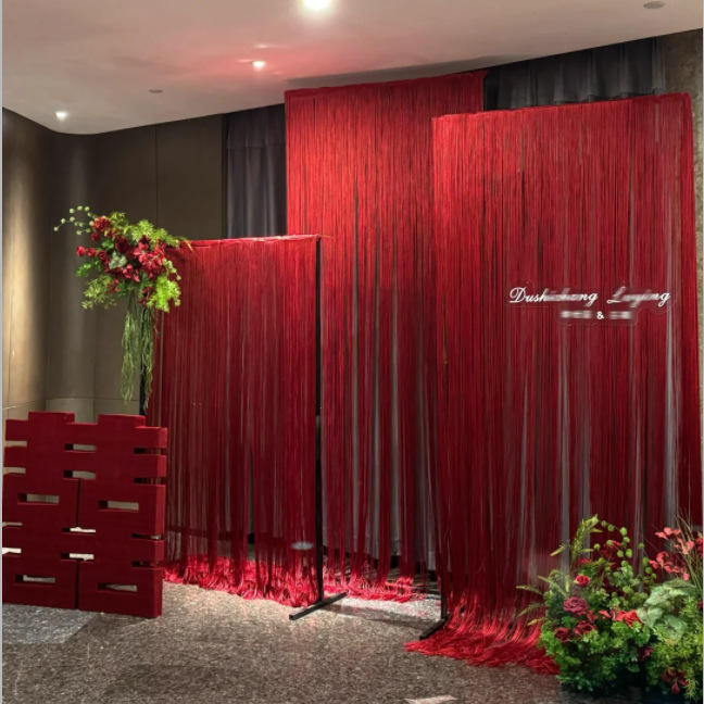 พู่ห้อยประดับเพดานห้องจัดงานแต่งงาน ของตกแต่งใหม่ ผ้าม่านประดับด้วยเส้นกลิตเตอร์