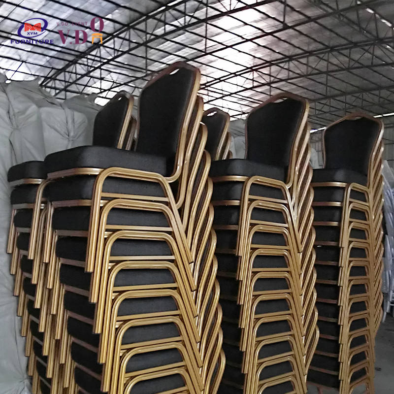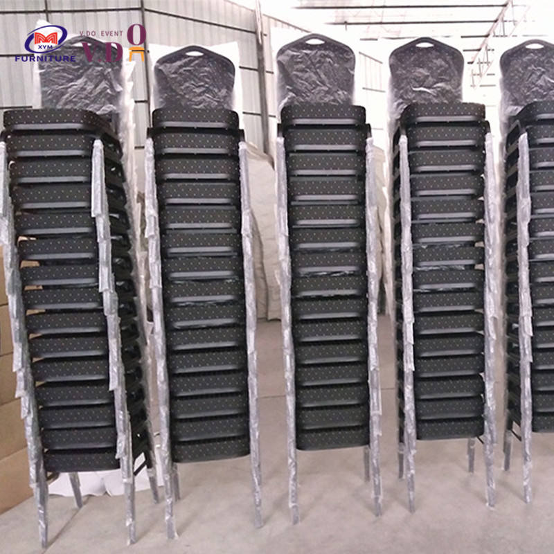 เก้าอี้จัดเลี้ยงโรงแรมแบบซ้อนเหล็กคุณภาพจากกวางโจวสำหรับราคาแพ็กเกจ: 15-18ชิ้น/กองซ้อนห่อด้วยถุงพลาสติกหรือผ้าไม่ทอ, ถุง PP สำหรับขาและด้านหลังแล้วถุงไฟเบอร์เสร็จ