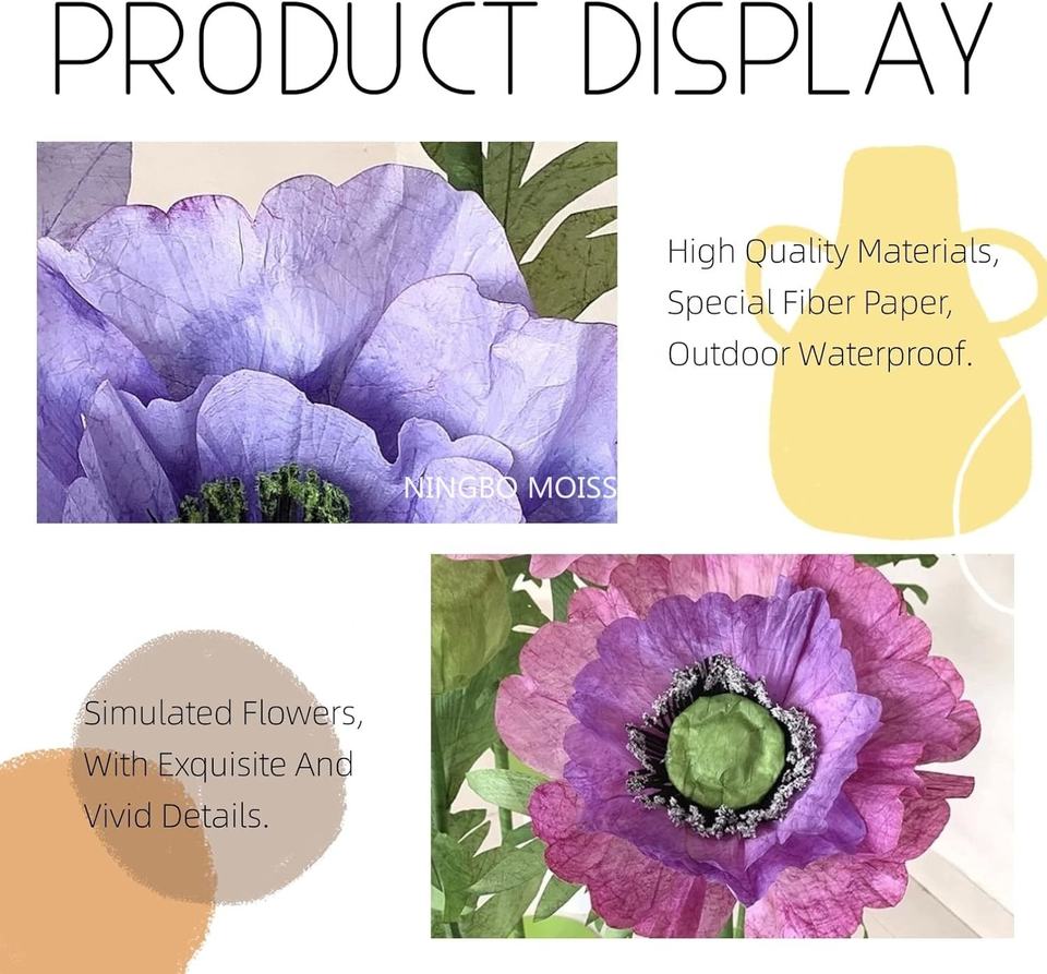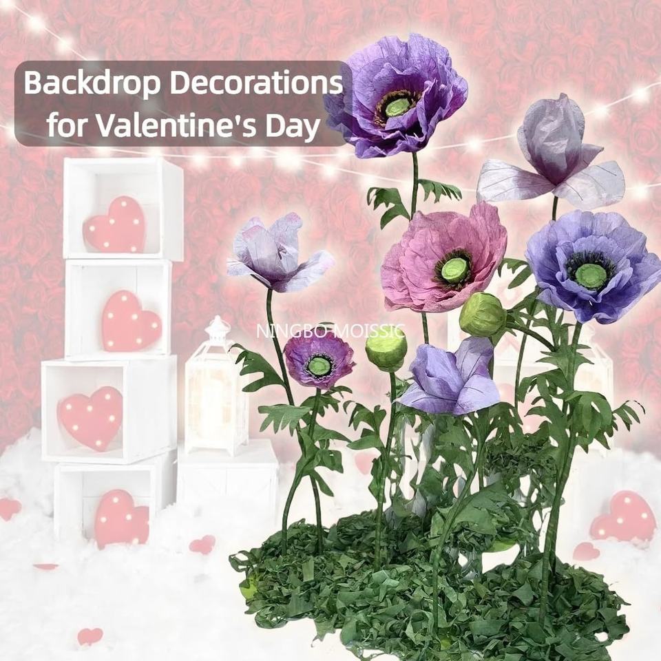 ผ้าไหมเทียม3ชิ้น10FT 7Ft ลายดอกไม้ปลอมสีม่วงน้ำเงินขนาดใหญ่สำหรับงานแต่งงาน