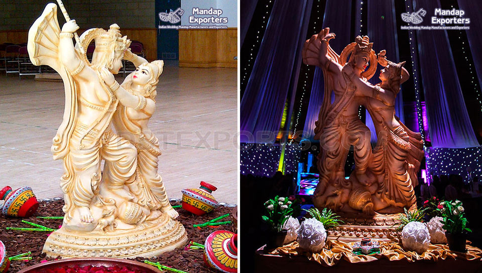 ตกแต่งมณฑปงานแต่งงาน กรอบรูปพระราชาคุริษณ์ รูปปั้นพระราชาคุริษณ์ใหม่ งานประติมากรรมพระราชาคุริษณ์แบบอินเดีย กรอบไฟเบอร์ธีมพระราชาคุริษณ์ แคลิฟอร์เนีย สหรัฐอเมริกา