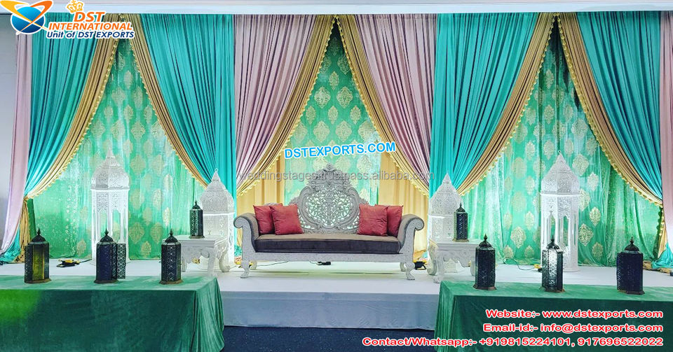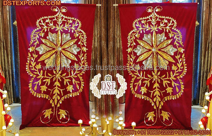 ฉากหลังงานแต่งงาน mehraab สำหรับ mandap และเวทีปักซุ้มออกแบบโค้งฉากหลังแต่งงาน