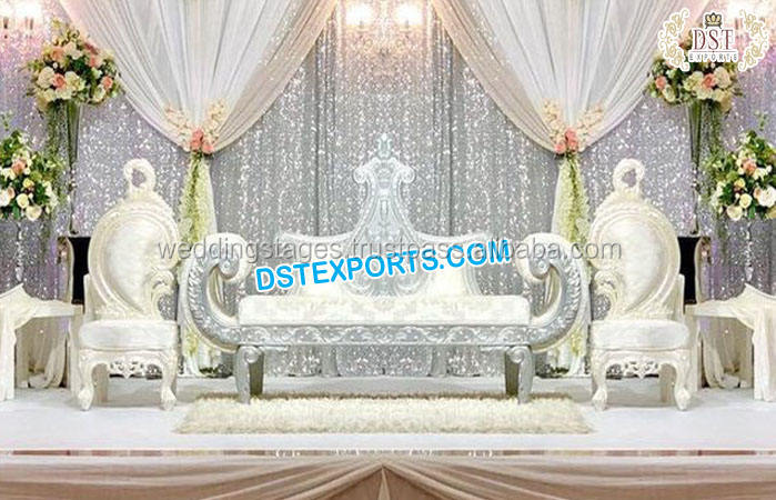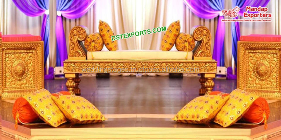 เก้าอี้แต่งงานโลหะโค้งสำหรับเจ้าบ่าวเจ้าสาว,ม้านั่งโลหะที่นั่ง Mehndi ไม่ซ้ำใครพร้อมซุ้มเหล็กดัดสำหรับเจ้าสาว