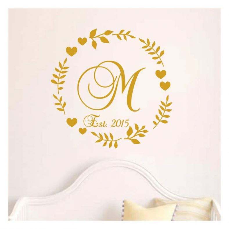 สติ๊กเกอร์ติดพื้นไวนิลกันน้ำสำหรับงานแต่งงาน ลายอักษรย่อ ชื่อคู่บ่าวสาว สำหรับตกแต่งพื้นเต้นรำ แบบลอกออกได้