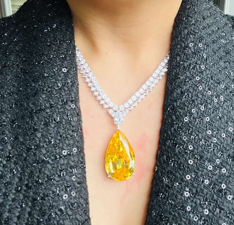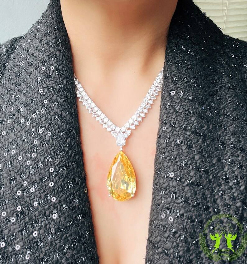 สร้อยคอเพชรสำหรับงานแต่งงานสร้อยคอหรูหราสำหรับงานปาร์ตี้สร้อยคอดีไซน์อาร์ตเดคโคสไตล์วินเทจสวยงามรูปทรงลูกแพร์สีเงิน