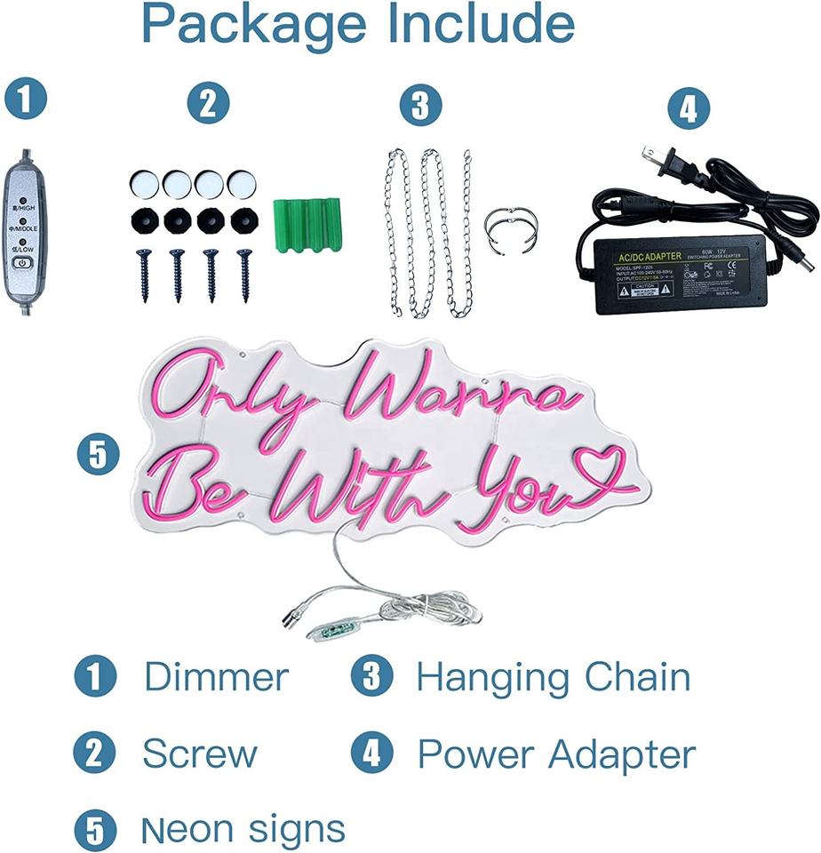 Product Name:Only wanna be with you with heart neon sign