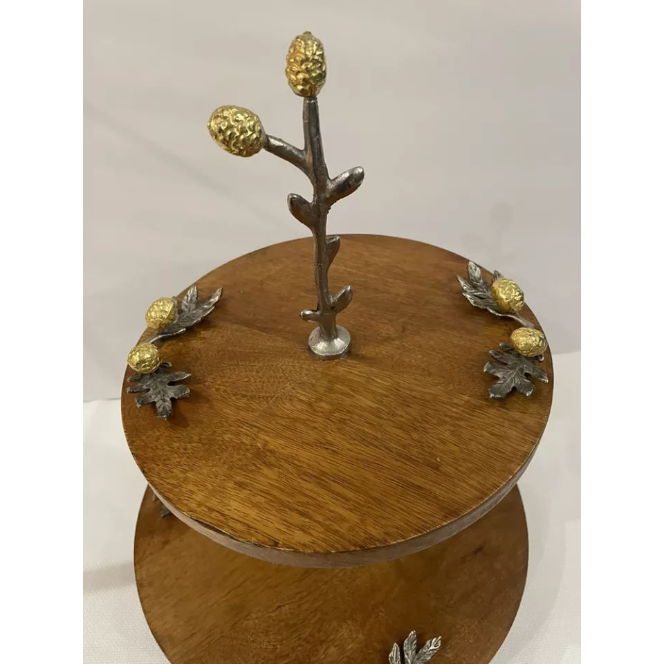 งานแต่งงานตกแต่งเค้กยืน2ชั้นถาดเสิร์ฟไม้พร้อมที่เน้นเสียงนกสีทองสำหรับเครื่องประดับบนโต๊ะในโรงแรม