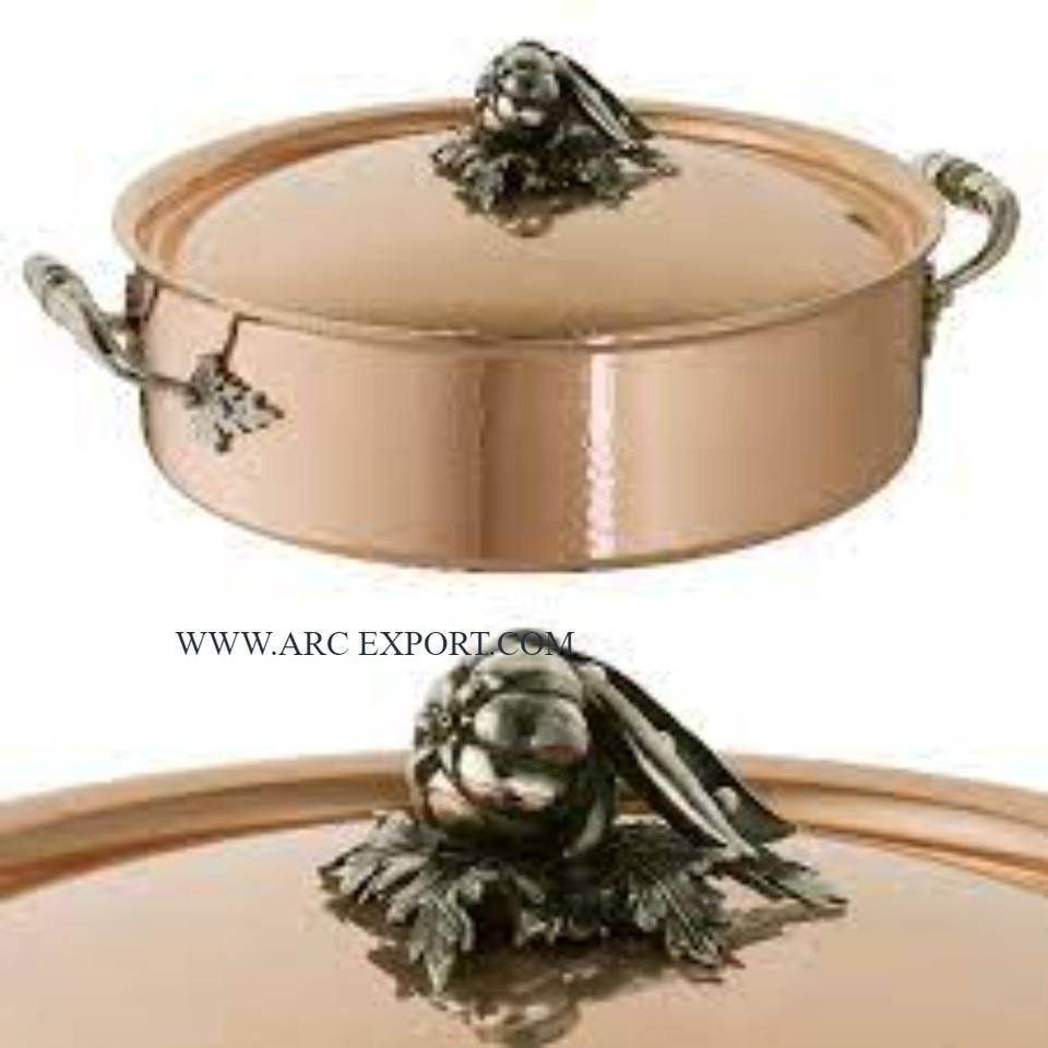 หม้อไฟใช้ในห้องครัวทำจากโลหะทองแดงบนโต๊ะสำหรับงานแต่งงานหม้อร้อนสำหรับทำอาหาร