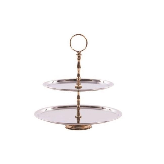 แท่นวางเค้กทำจากเงิน2ชั้นหรูหราของตกแต่งโต๊ะทำด้วยมือทำจากอลูมิเนียมสำหรับปาร์ตี้สำหรับเค้กและผลไม้มาตรฐาน