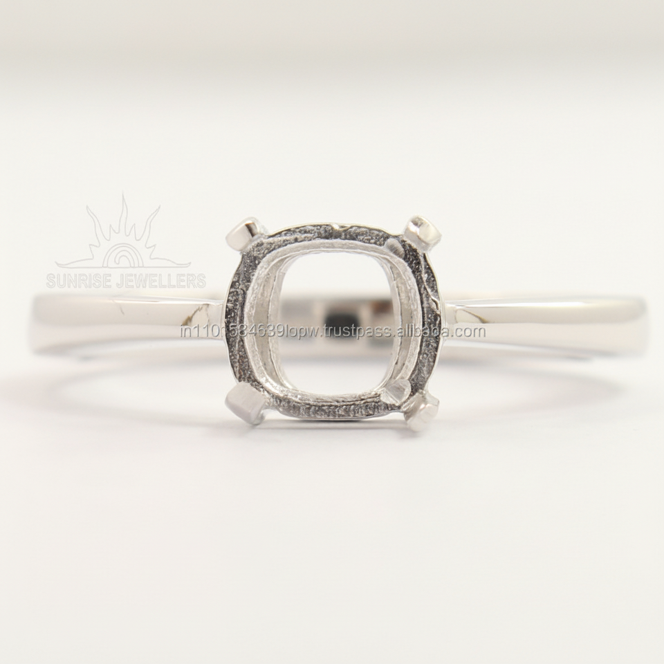 แหวนเงินแท้ 925 สำหรับงานหมั้น/งานแต่ง ทรงคุชชั่น 6x6 มม. แบบเซ็ตกรงเล็บ แหวนแบบฮาโล เลือกขนาดได้