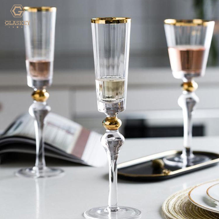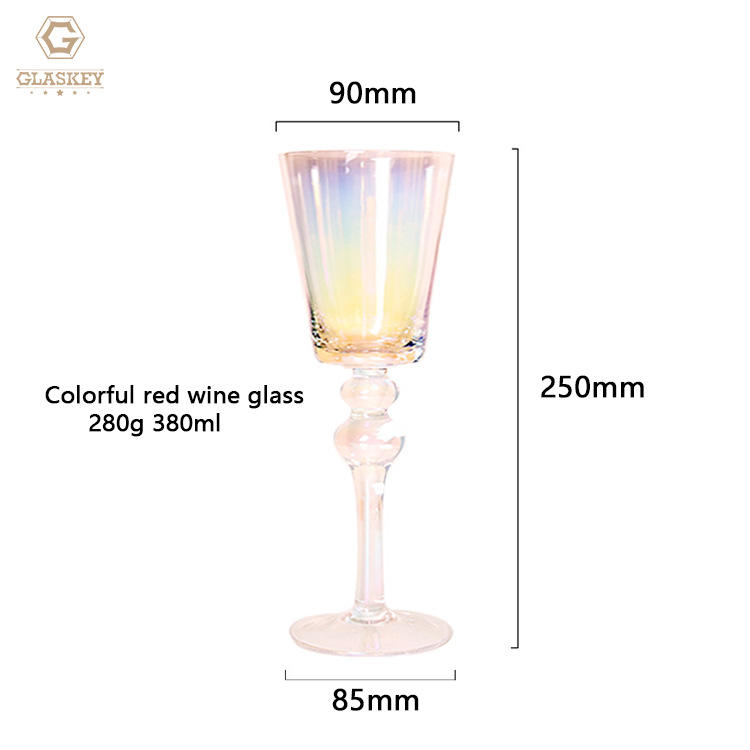 แก้วไวน์คริสตัลสีแดงทำด้วยมือสำหรับงานแต่งงานลูกปัดขอบทองแก้วไวน์ประกายแชมเปญ