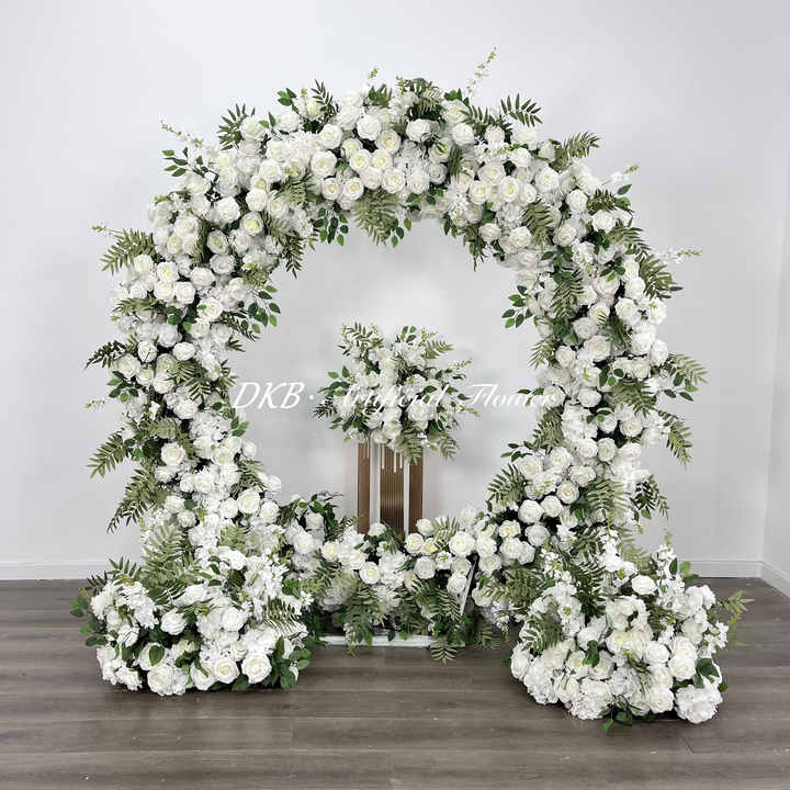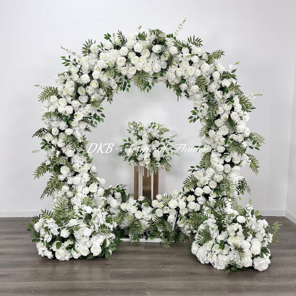 ซุ้มดอกกุหลาบสีขาวและสีเขียวสำหรับตกแต่งงานแต่งงานอุปกรณ์จัดงานแต่งงาน