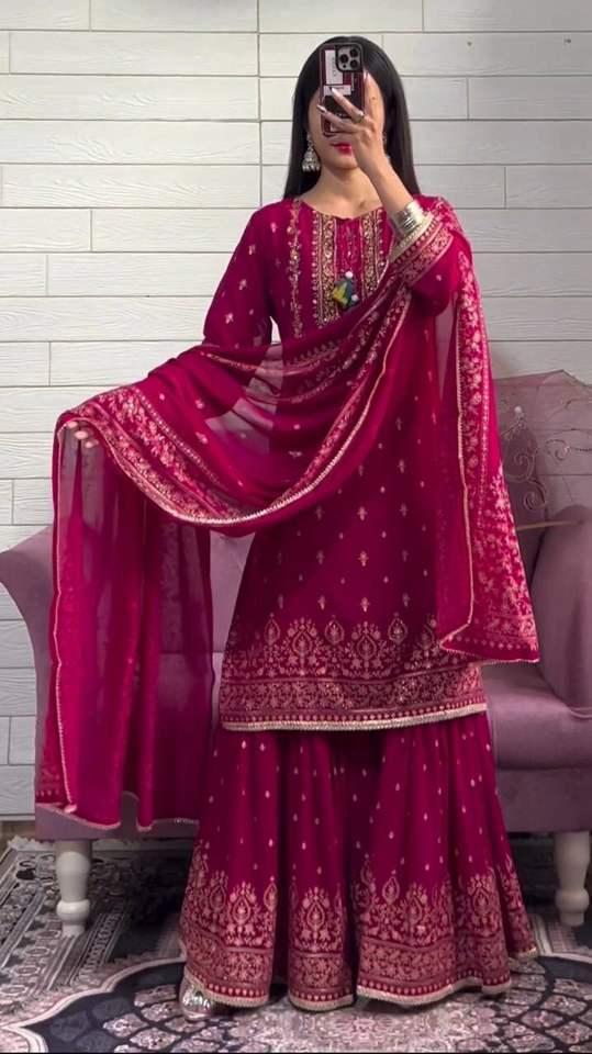 ชื่อผลิตภัณฑ์:เสื้อวอร์ท็อปและชาราราผ้าไหมชิโนนปักเลื่อม พร้อมผ้าคลุม