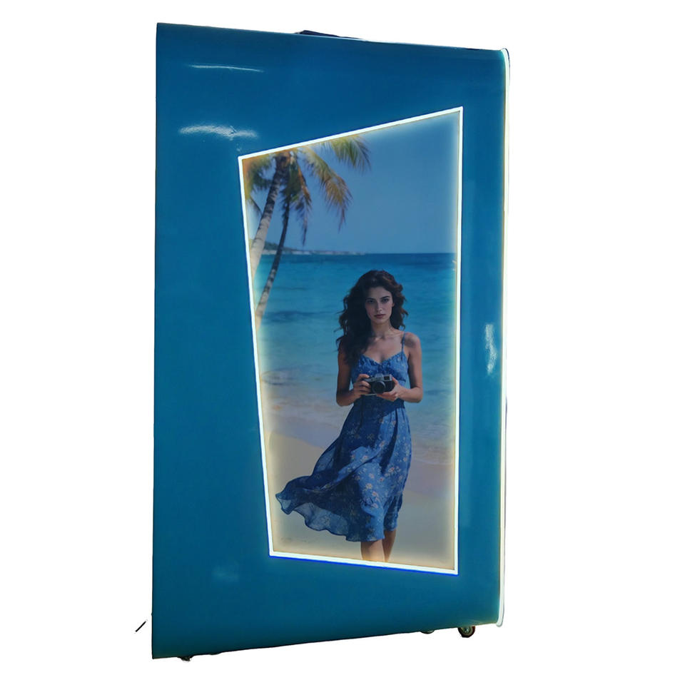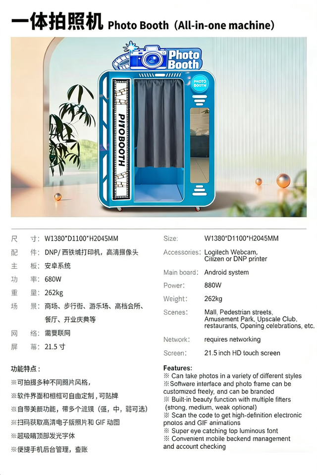 ตู้ถ่ายรูปอัตโนมัติแบบวงกลมพร้อมไฟ LED ฉากหลัง Vogue สำหรับงานแต่งงาน พร้อมขาตั้งเซลฟี่ ระบบหยอดเหรียญ พิมพ์รูปด้วย ID บูธถ่ายรูป 360 องศา