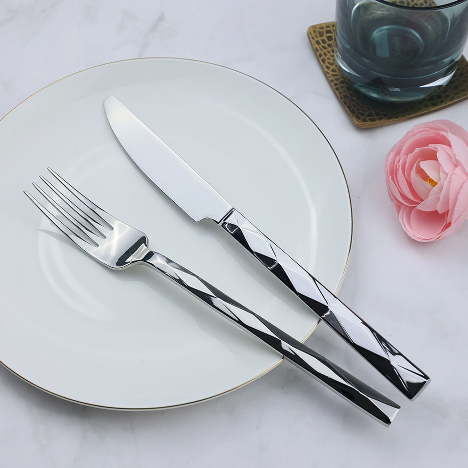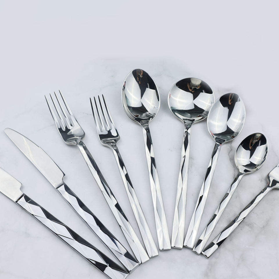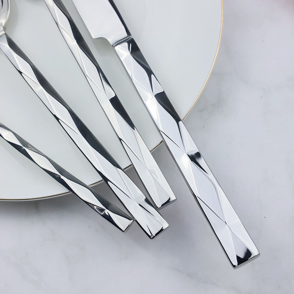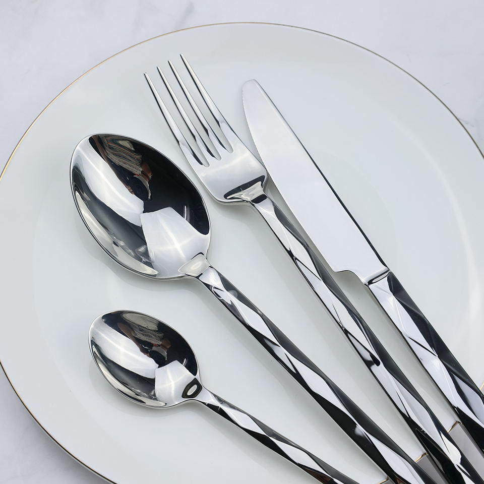 ชุดเครื่องใช้บนโต๊ะอาหารสแตนเลสด้ามเงินสำหรับงานแต่งงานชุดช้อนส้อมและส้อมสไตล์วินเทจหรูหรามาใหม่