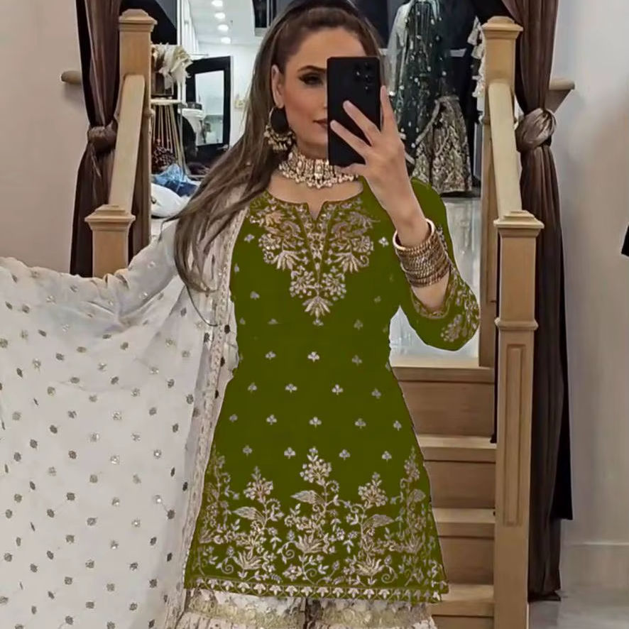 ชุดชาราร่าผ้าฟ็อกซ์จอร์เจตต์แบบเย็บสำเร็จสำหรับงานแต่งงาน คอลเลคชั่นพิเศษ